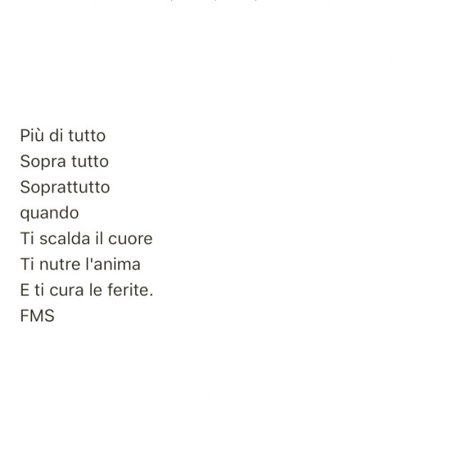 "Più di tutto, soprattutto, sopra tutto, se ti solletica l'intelletto, ti scalda il cuore e ti cura le ferite". S.